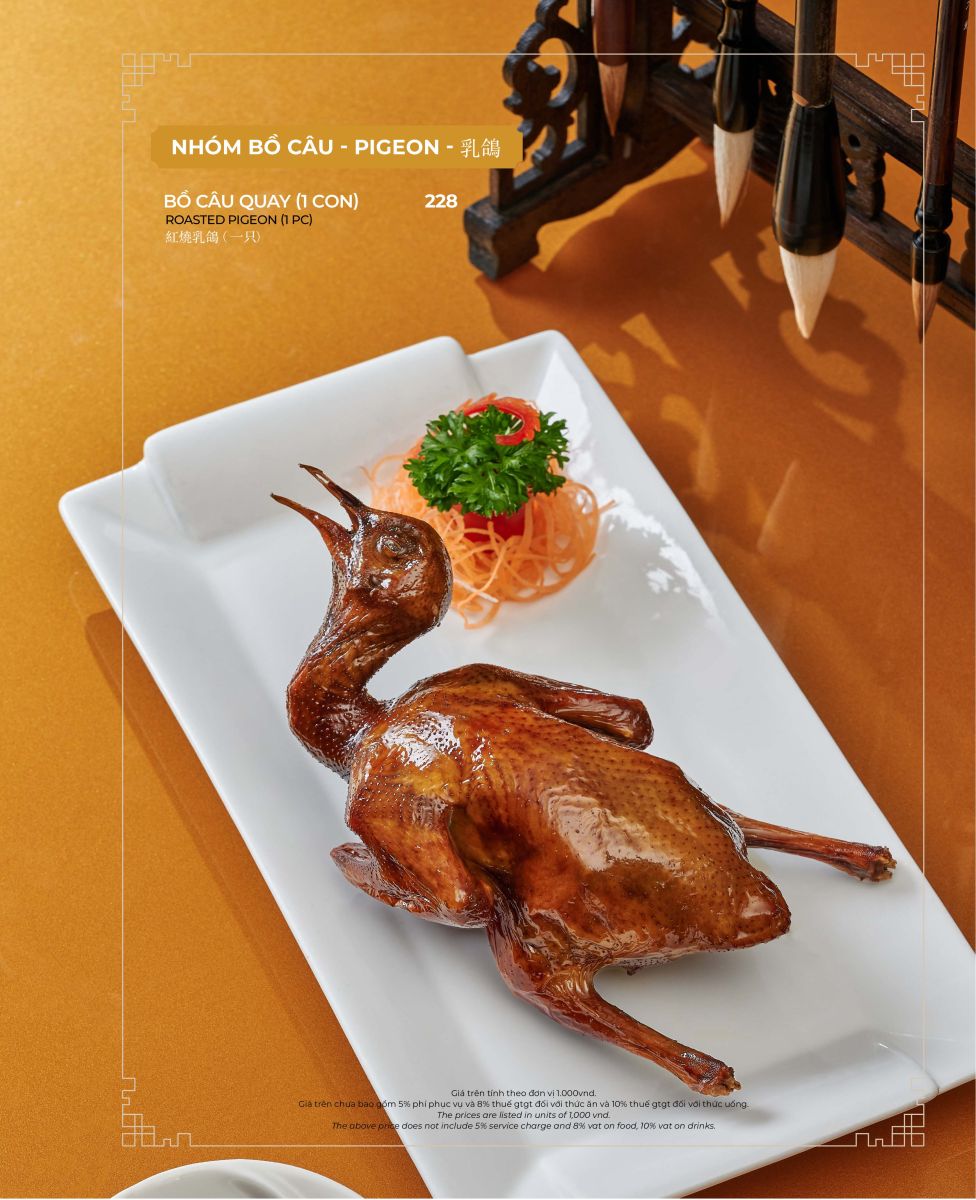 "Vịt quay Bắc Kinh" nổi tiếng với lớp da vàng óng, giòn tan, thịt mềm mại, được chế biến theo phương pháp truyền thống, mang đến hương vị đậm đà không thể cưỡng lại. Món ăn này luôn là tâm điểm trong các bữa tiệc, thu hút mọi ánh nhìn và làm hài lòng những thực khách khó tính nhất.